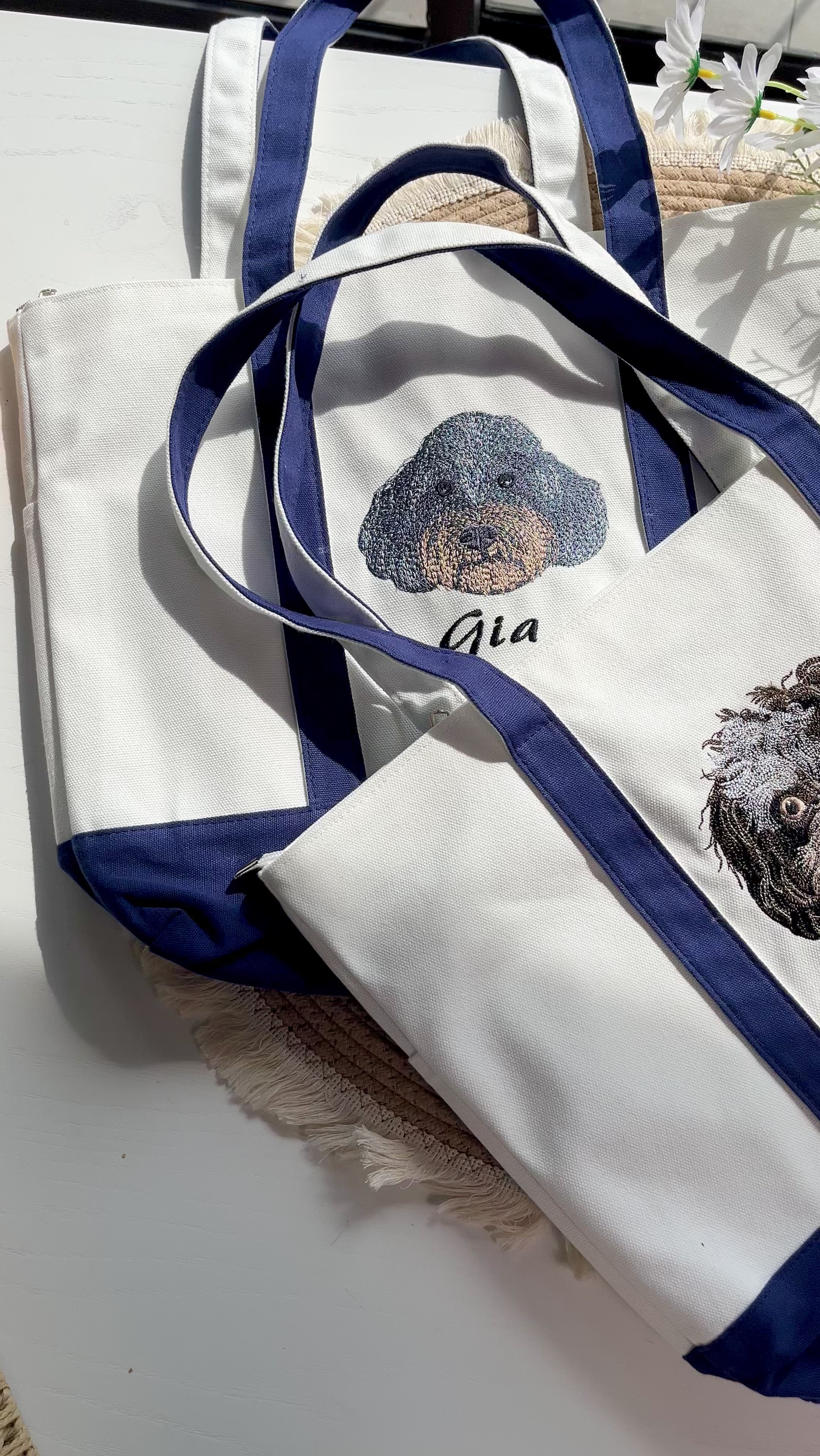 Celebrate the love for your furry friend with this beautifully embroidered Custom Pet Tote Bag. This personalized tote features a detailed, hand-crafted embroidery of your pet’s face, making it the perfect gift for dog lovers, moms, or anyone who adores their four-legged companion.
