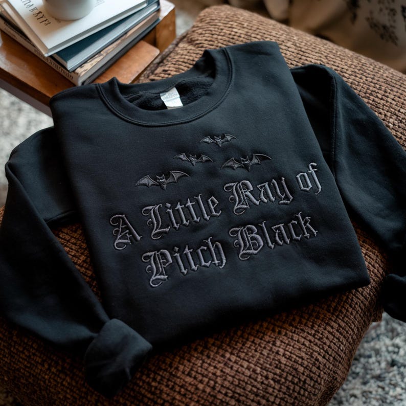Embroidered A Little Ray Of Pitch Black Sweatshirt, Sarcasm Shirt, Funny Gift For Friend Birthday, Halloween Shirt, Dark Humor
