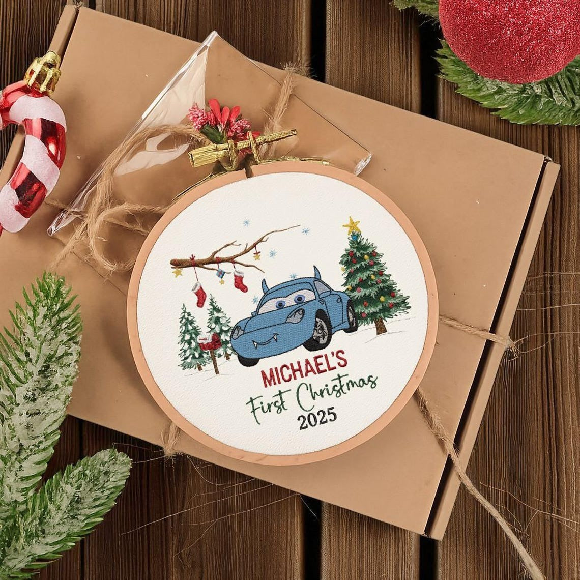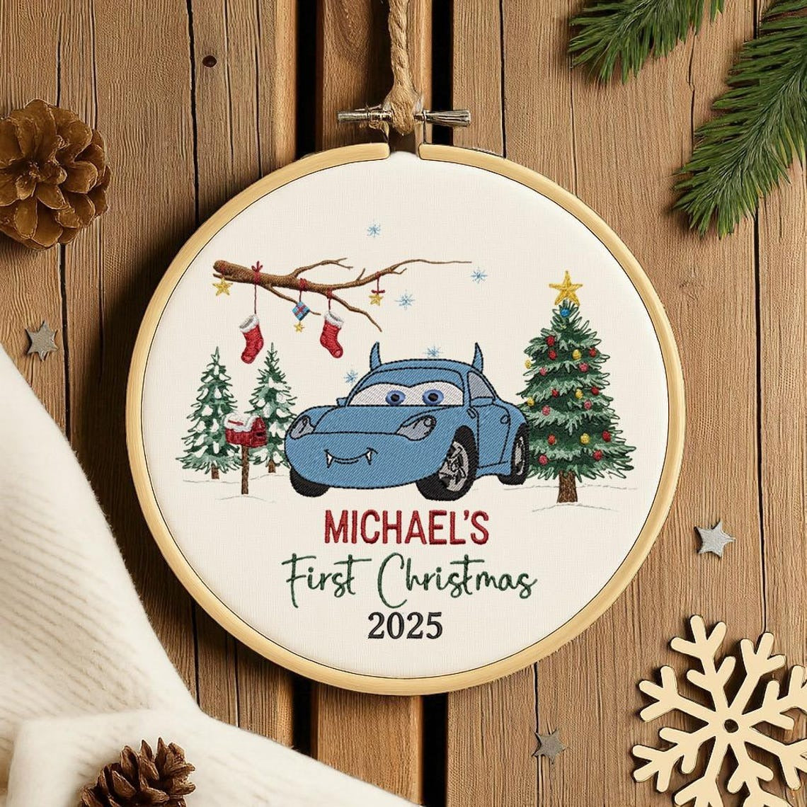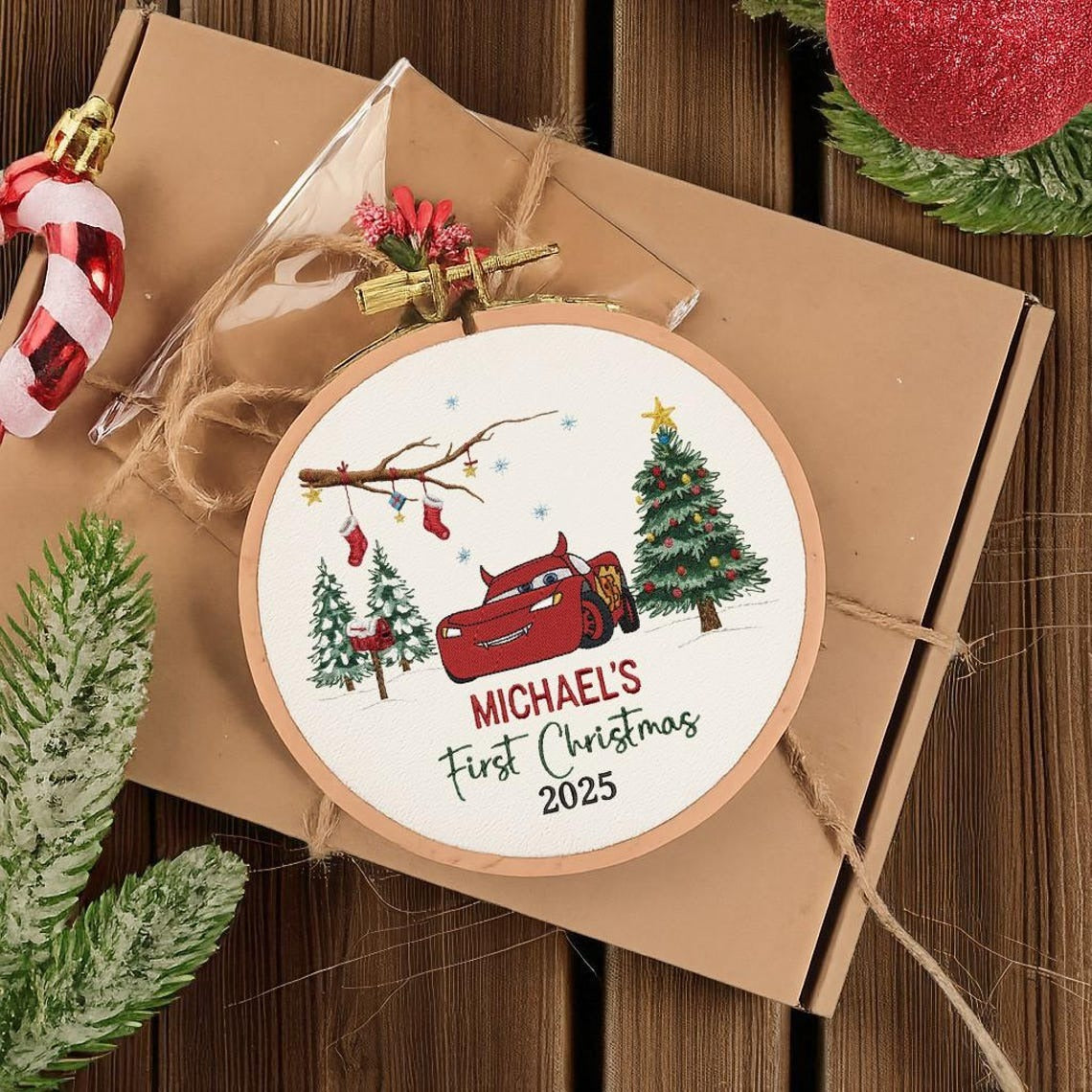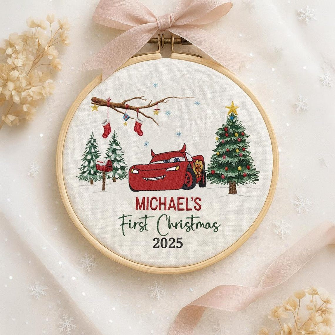 Babys First Christmas Ornament, New Baby Gift, Custom Mcqueen Ornament Keepsake, Personalized Embroidered Ornament Baby First Xmas