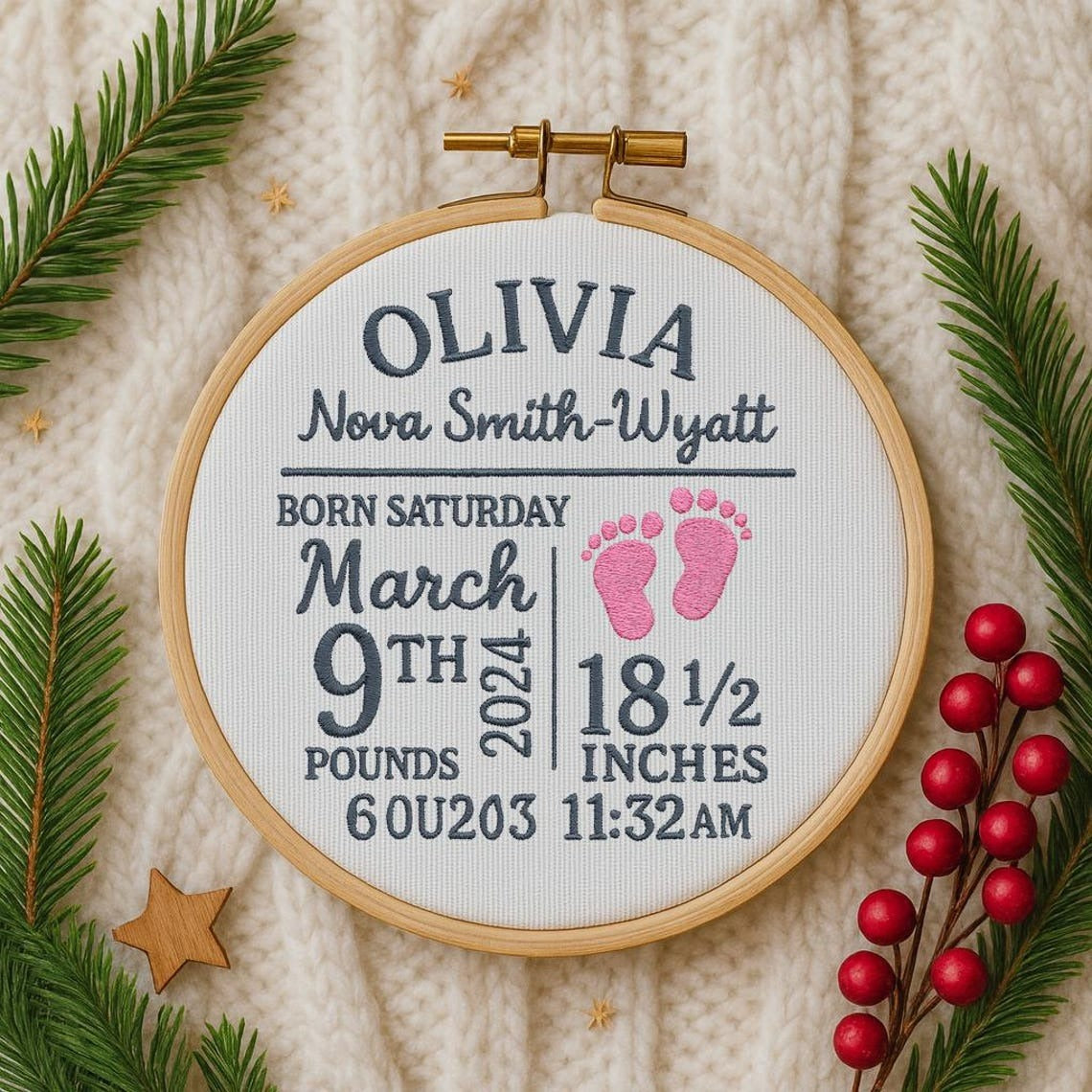 Personalized Birth Announcement Ornament, Custom Newborn Baby Birth Stats Keepsake, Customized Baby Shower Gift Present