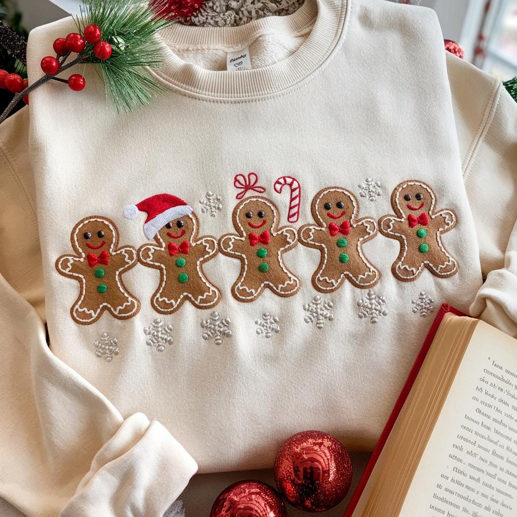 A cozy, heartwarming Christmas sweatshirt featuring an adorable row of embroidered gingerbread characters — the perfect festive piece for families, couples, or anyone who loves sweet holiday charm. With its simple but delightful gingerbread design, this sweatshirt brings warm holiday vibes to every winter moment. 🍪✨🎄