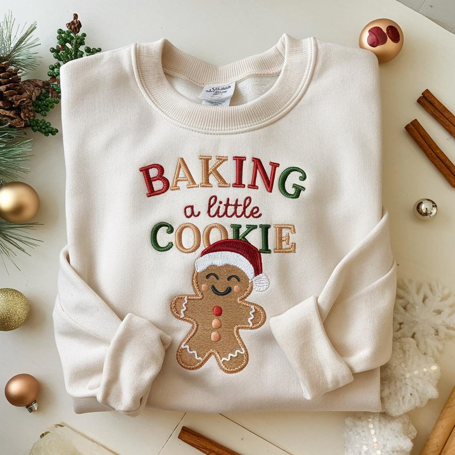 A sweet and festive sweatshirt for moms-to-be, holiday bakers, or anyone who loves the warm, cozy magic of Christmas. Featuring a smiling gingerbread cookie and the playful phrase “Baking a Little Cookie,” this piece is perfect for celebrating the season in embroidered style. 🍪✨