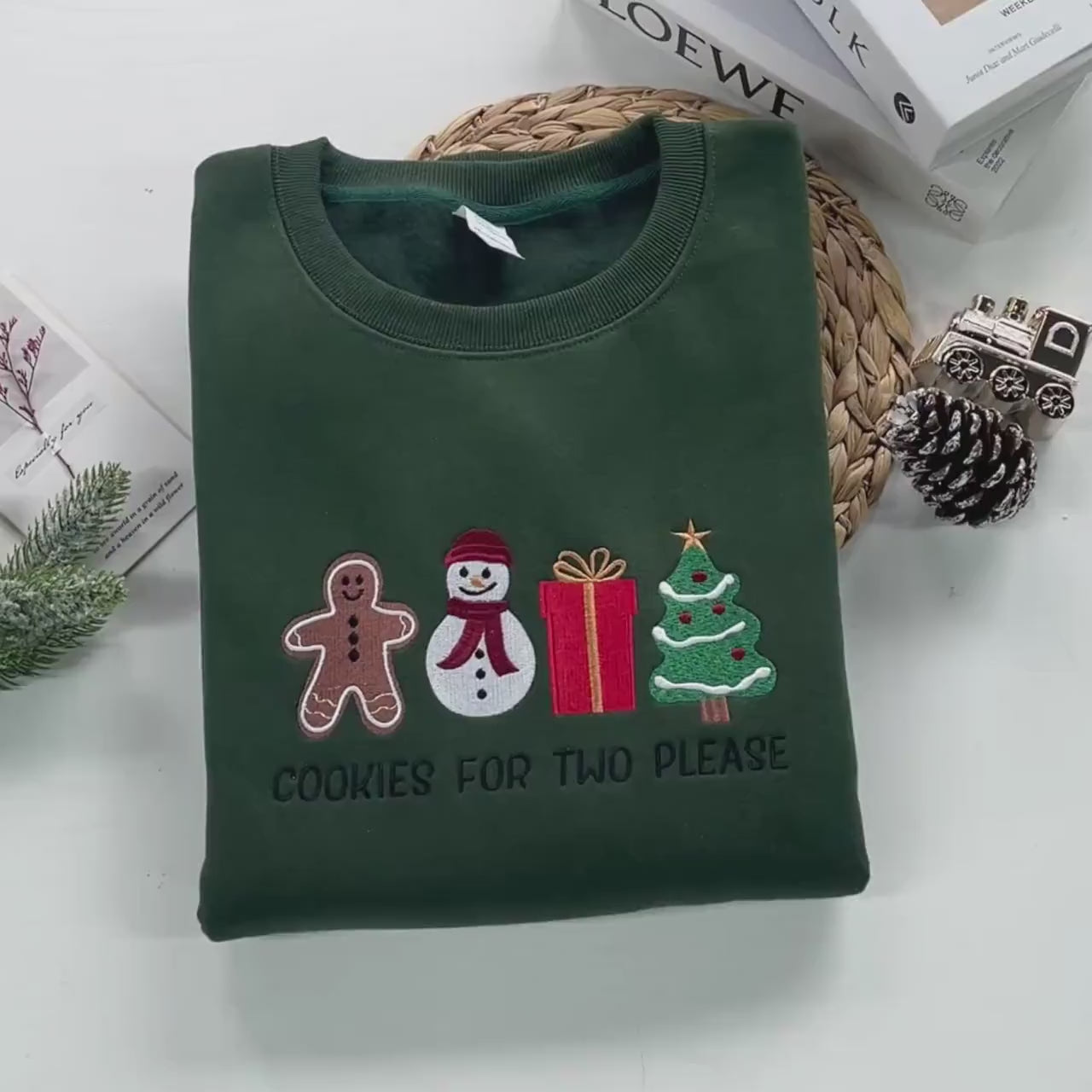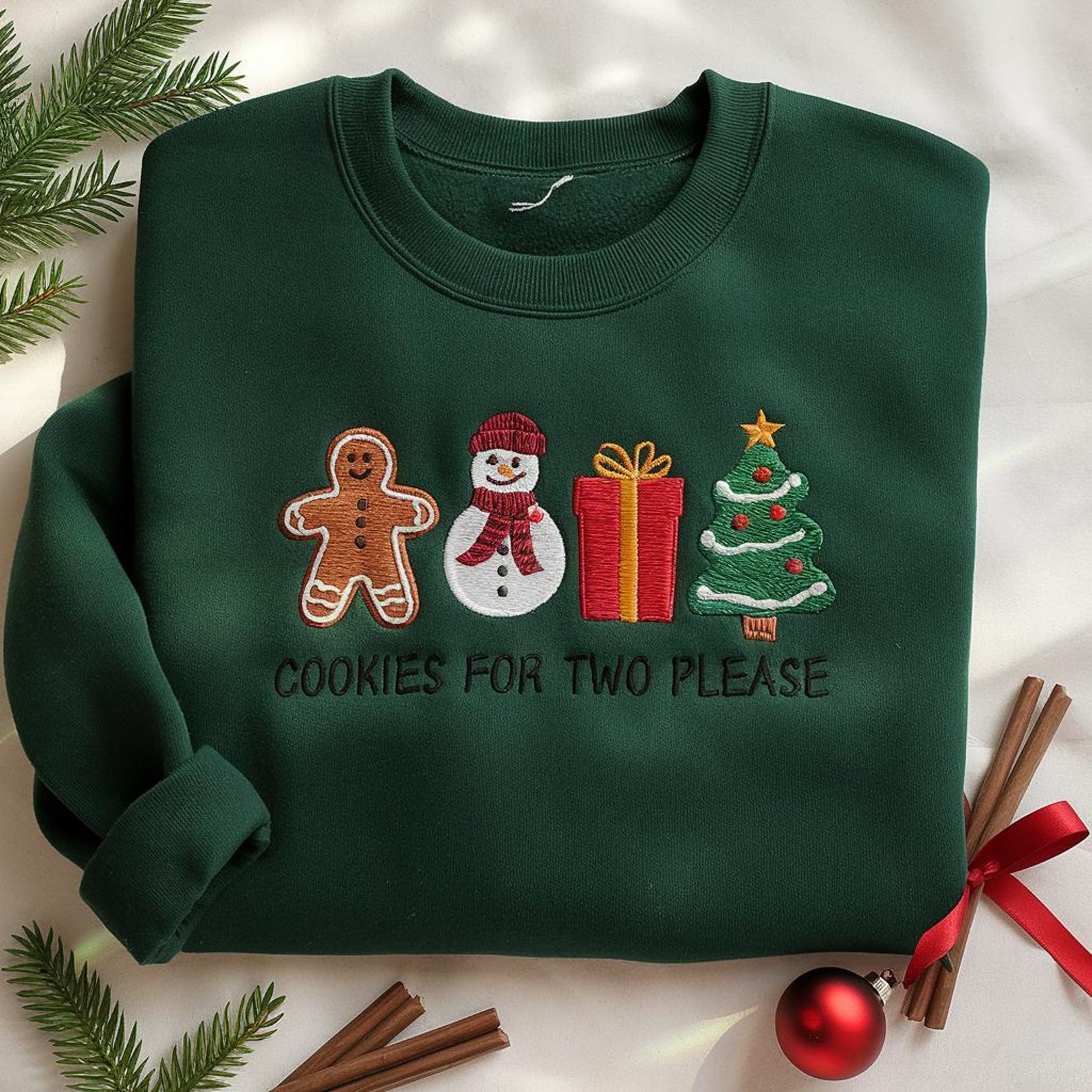 🎄 Cookies for Two Embroidered Christmas Sweatshirt
